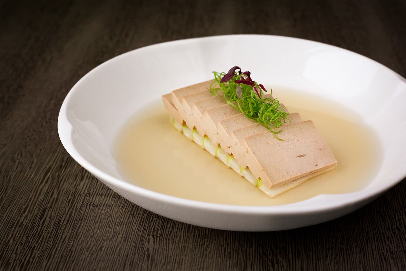· Heart of palm and shepherd’s purse, Jinhua ham, kelp jelly