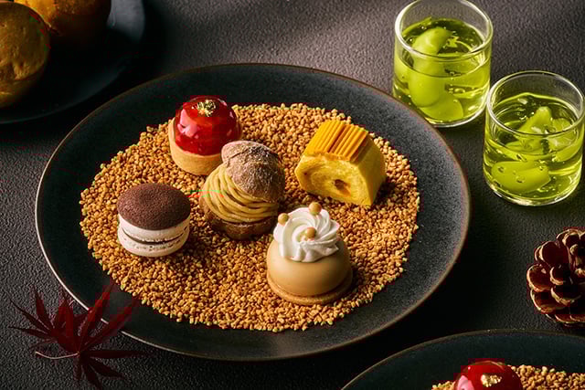 Indulge in the iconic flavors of fall in our Autumn Harvest Afternoon Tea, available from November 1. This elegant afternoon tea features a selection of sweets that showcase some of fall’s most beloved flavors, from the Japanese chestnut crème of our Mont Blanc choux crème to the sautéed pear and caramel mousse of our caramel poire.