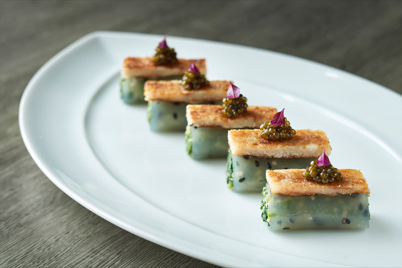 キャビアのせ野菜巻き