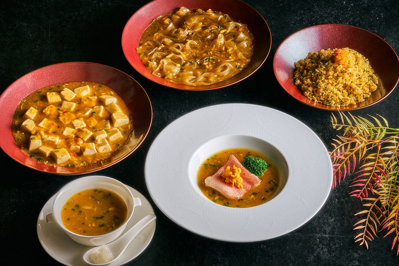 上海蟹を贅沢に包んだ小籠包や、ツバメの巣を添えた上海蟹のコラーゲンスープ、さらに上海蟹味噌をのせたスジアラの蒸し物など、豊かな風味あふれる料理の数々をお楽しみいただけます。