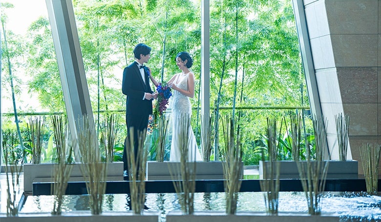 新郎新婦が永遠の愛を誓う結婚式。